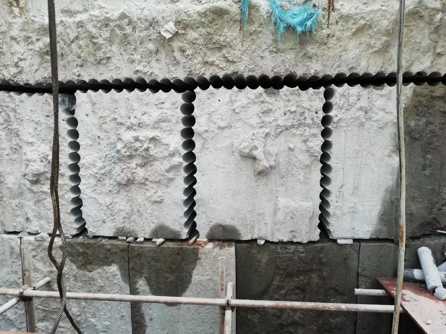 在建筑内部改造中(如墙体开门窗洞、扩大现有洞口),通过排孔切割可控制切割尺寸,减少传统凿拆的震动和粉尘污染,尤其适合混凝土剪力墙、梁柱等承重结构的局部处理。