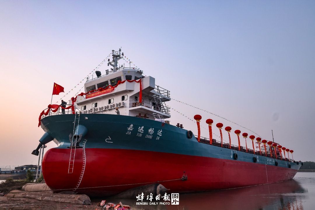 10月10日,皖北首艘“蚌埠造”LNG新能源货轮“嘉迅流畅”号在蚌埠市淮河造船有限公司正式吉水投运,敞开蚌埠市绿色航运新篇章。陈昂 摄